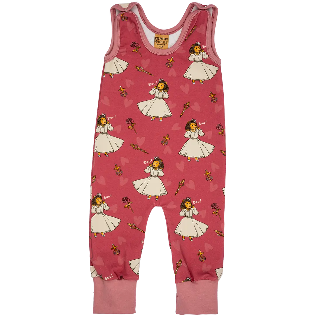 Children's dungarees, made of 95% organic cotton and 5% elastane.
