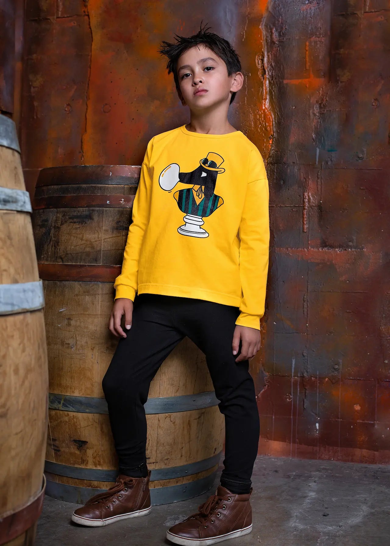 Koszulka dla dzieci z długim rękawem wykonana z 95% bawełny i 5% elastanu.