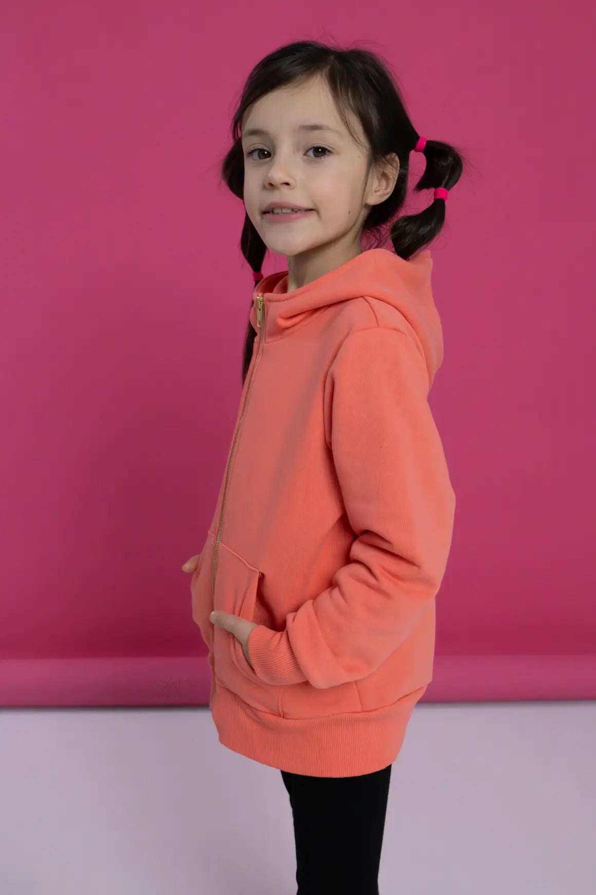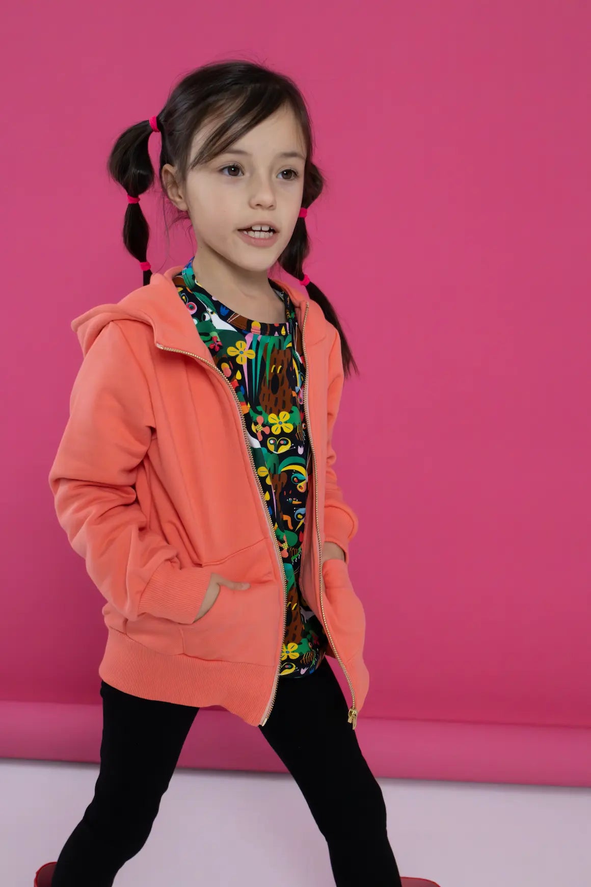Zapinana bluza dla dzieci z kapturem, z grubej dresówki, wykonana z 95% bawełny organicznej i 5% elastanu.