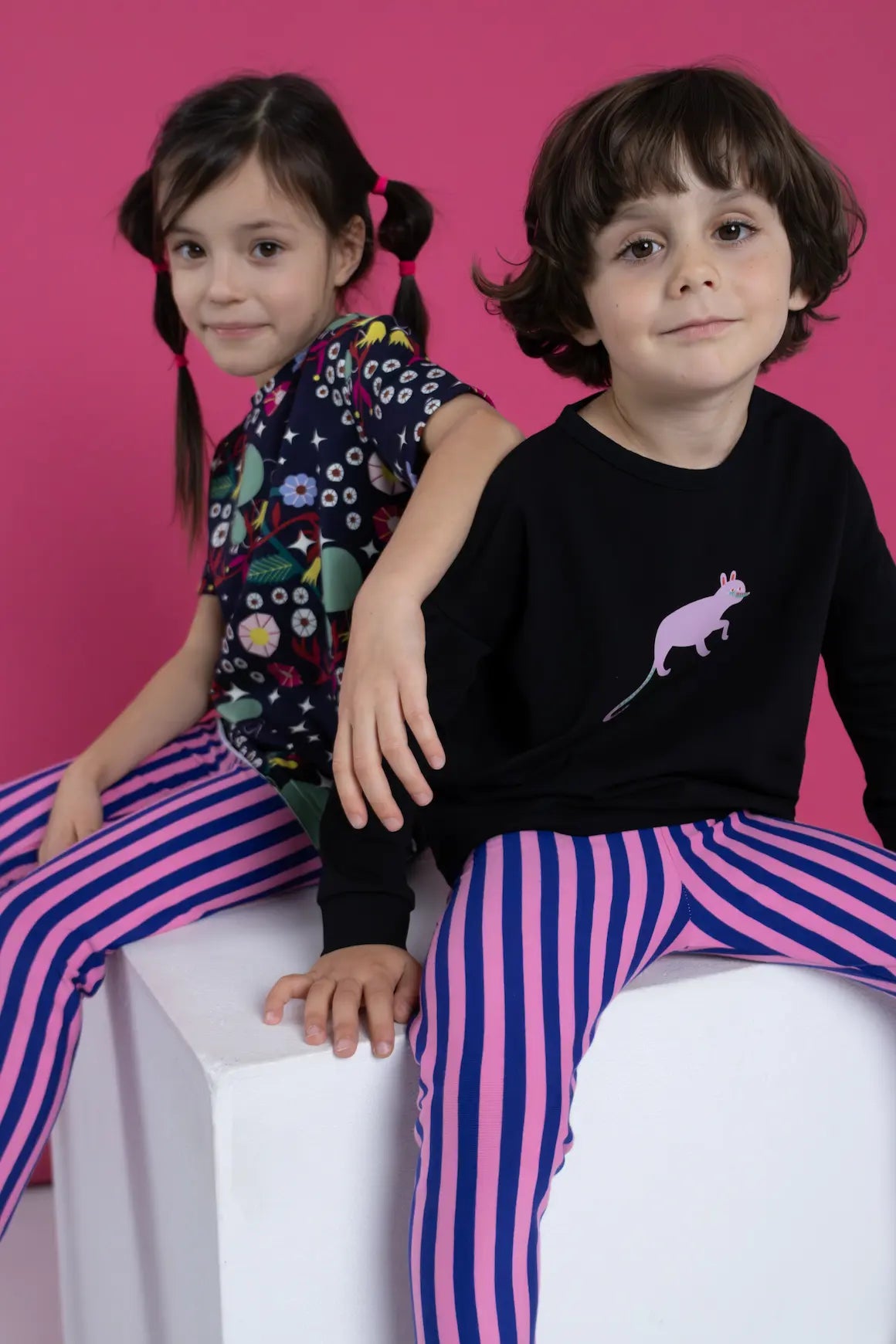 Legginsy dla dzieci wykonane w 95% bawełny organicznej i 5% elastanu.