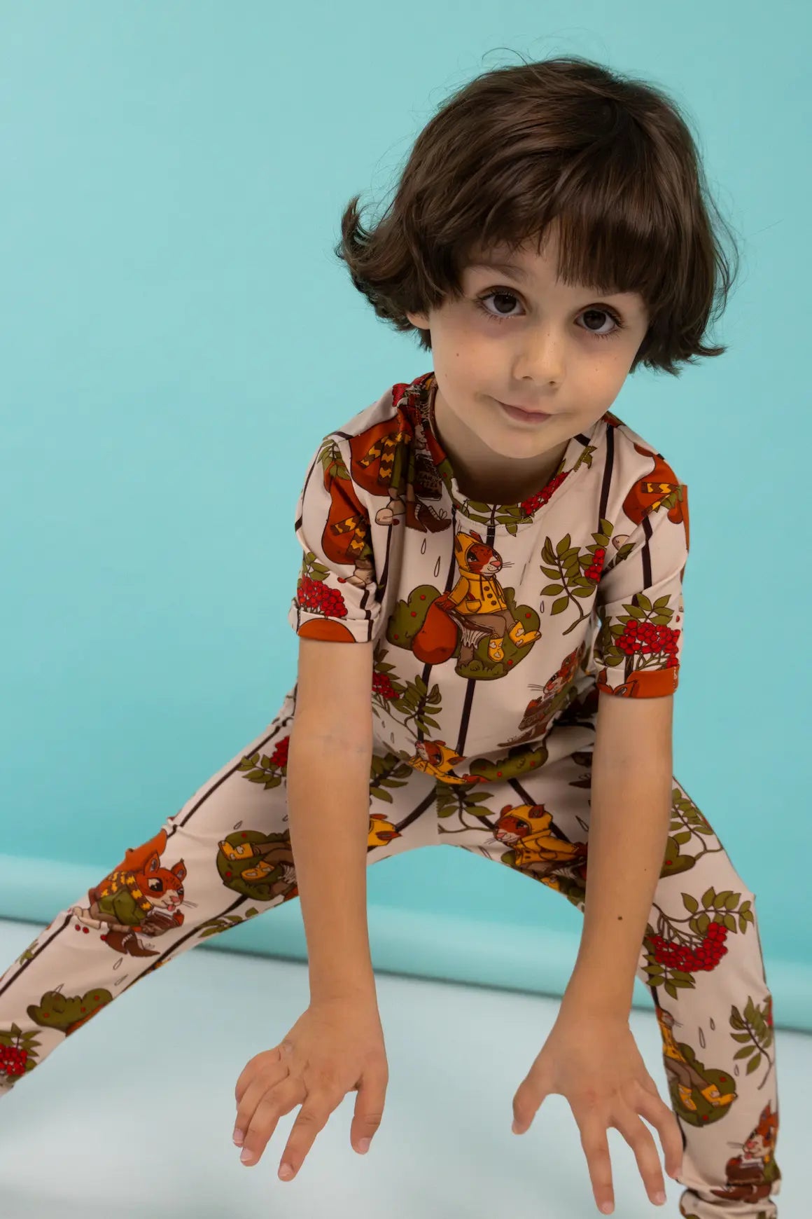 Legginsy dla dzieci wykonane w 95% bawełny organicznej i 5% elastanu.