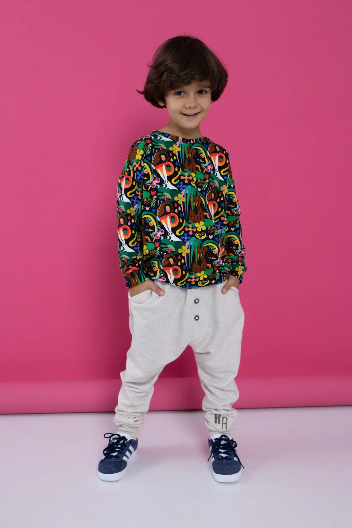 Koszulka dla dzieci z długim rękawem wykonana z 95% bawełny organicznej i 5% elastanu.