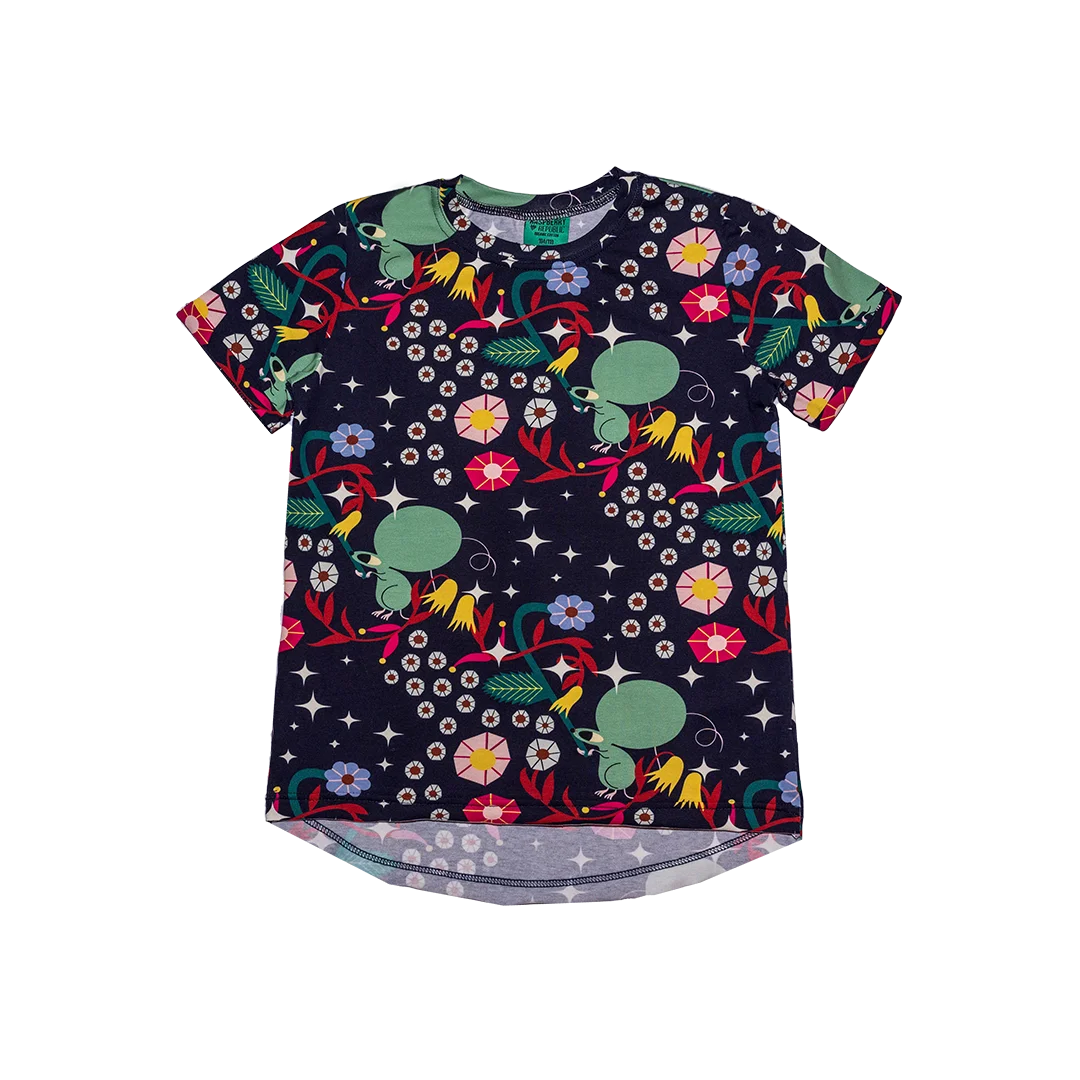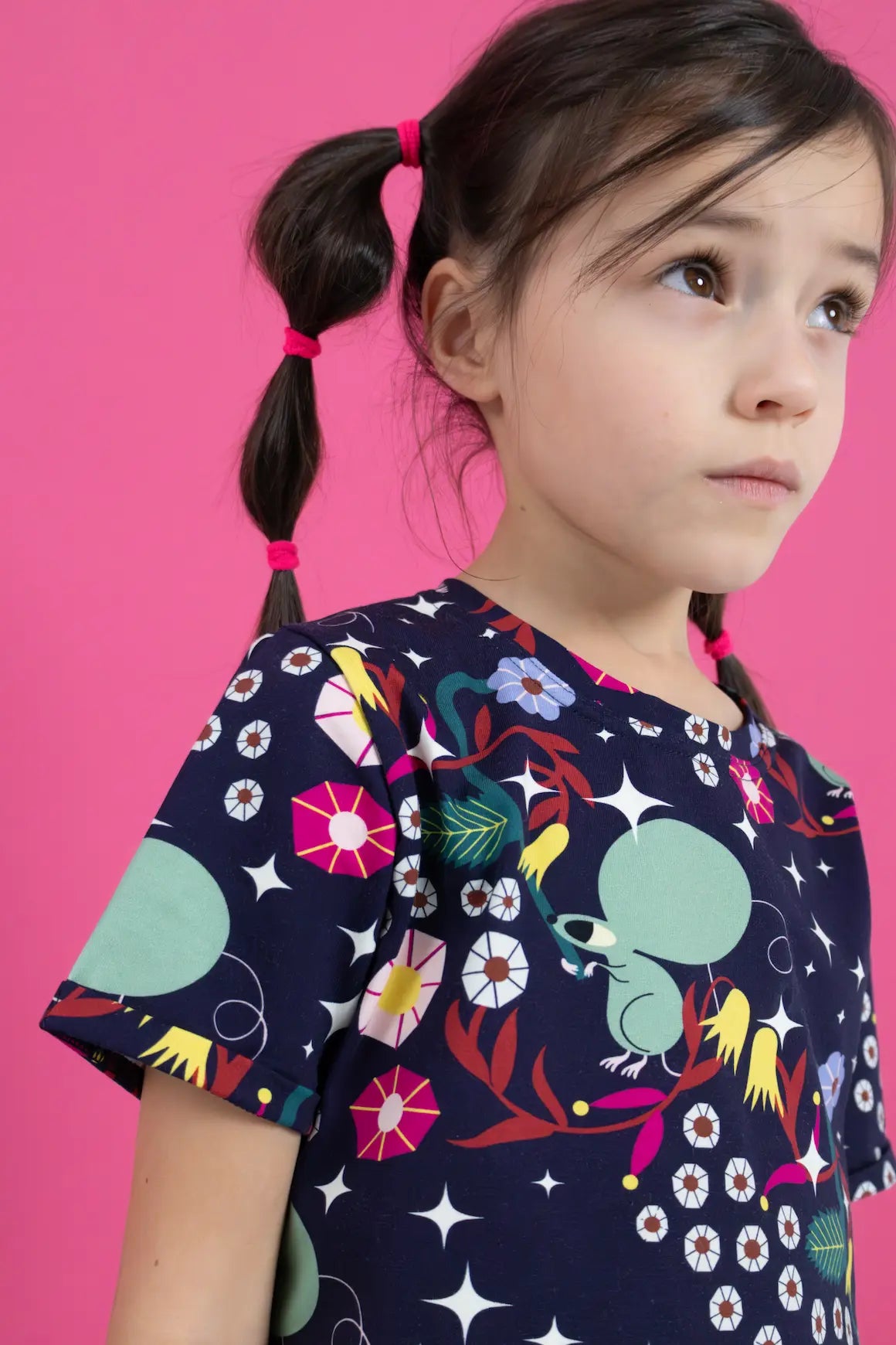 Koszulka dla dzieci z krótkim rękawem wykonana z 95% bawełny organicznej i 5% elastanu.