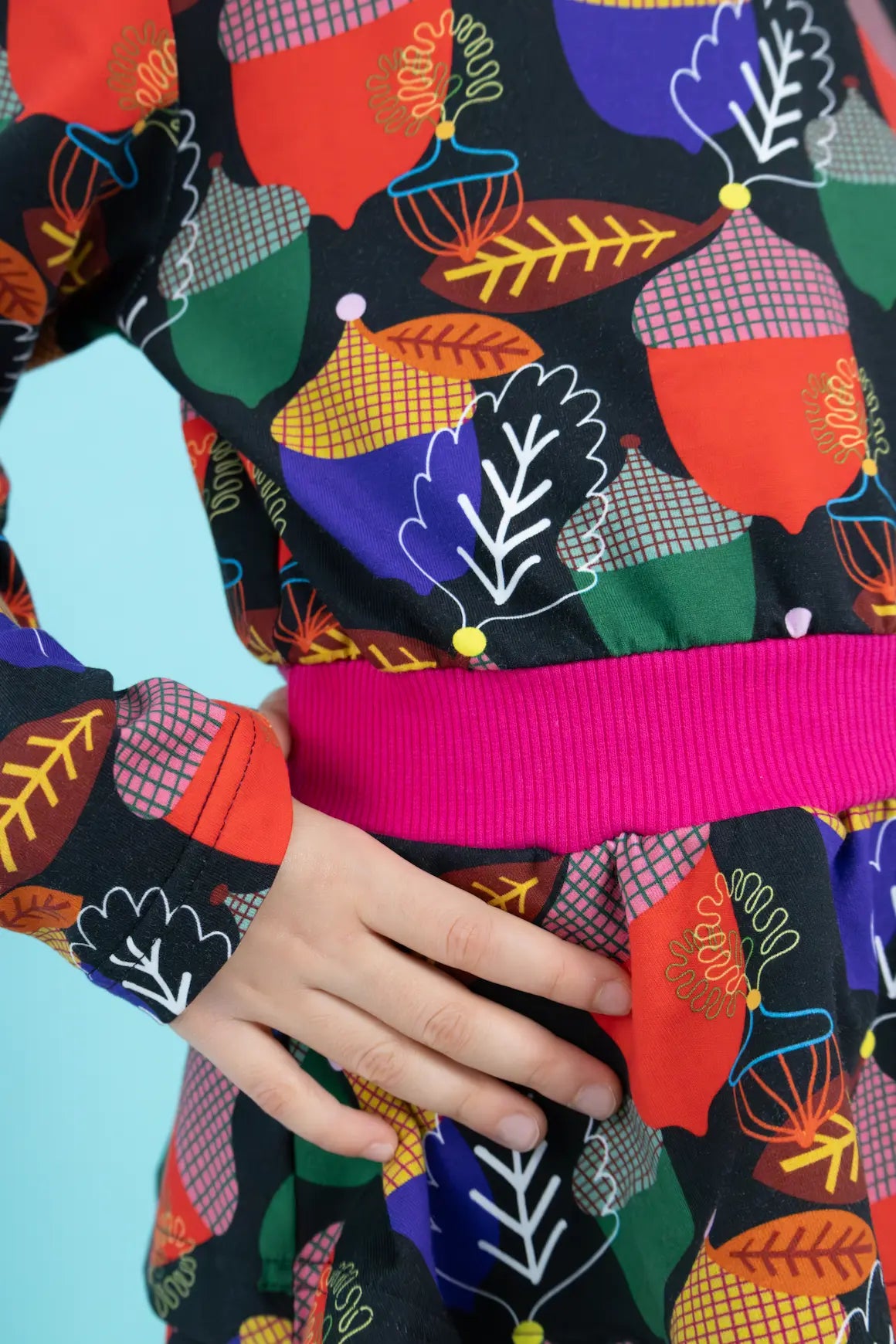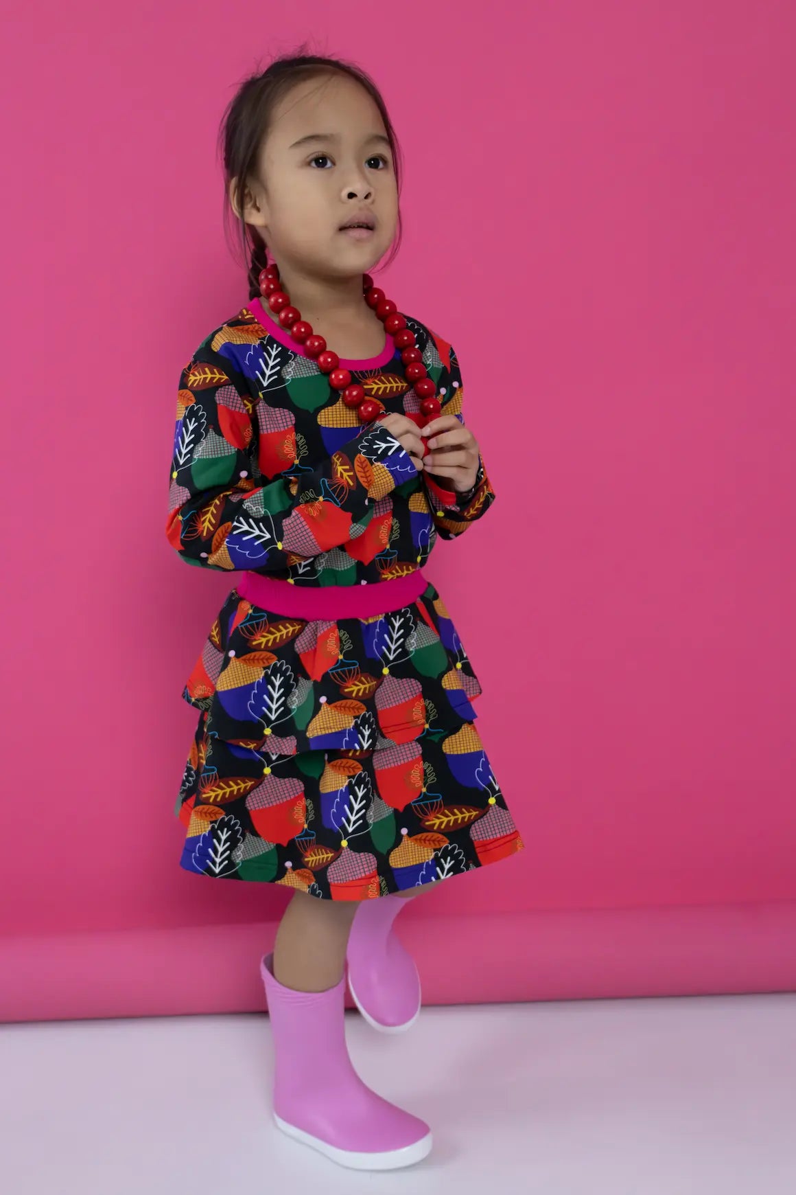Sukienka dla dziewczynek wykonana z 95% bawełny organicznej i 5% elastanu.